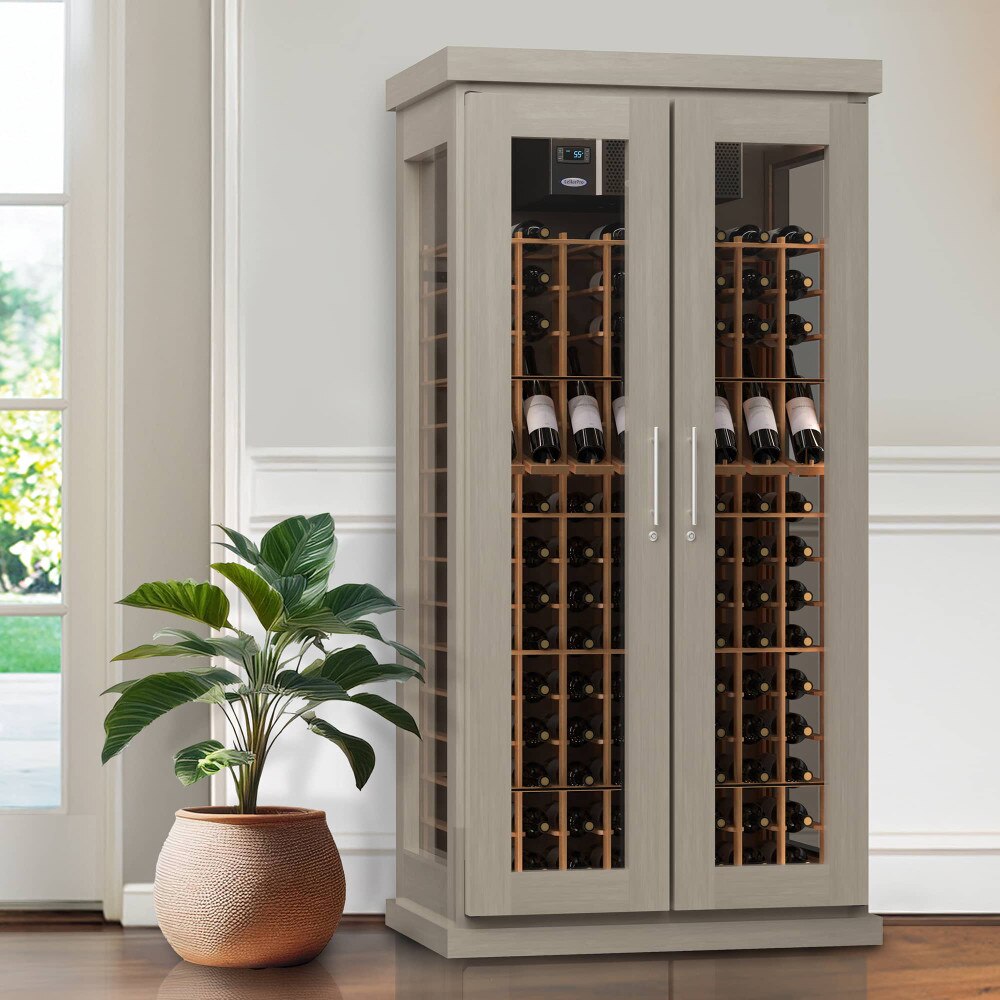 Le Cache Model 2400 Wine Cabinet Driftwood (P/N 36957). Featuring straight lines, glass sides and luxurious racked storage for 256 bottles plus bulk storage for 30 bottles, our 2400 Series wine furniture-quality cabinets are sized for today's living spaces. Purchase Price per Bottle: $25